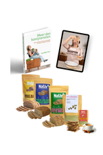 Het fysieke boek Meer dan konijneneten, een digitale receptenbundel, 3 broodmixen en 2 crackermixen en 1 Chai Gut Balance om meteen in de praktijk te brengen wat je leest!