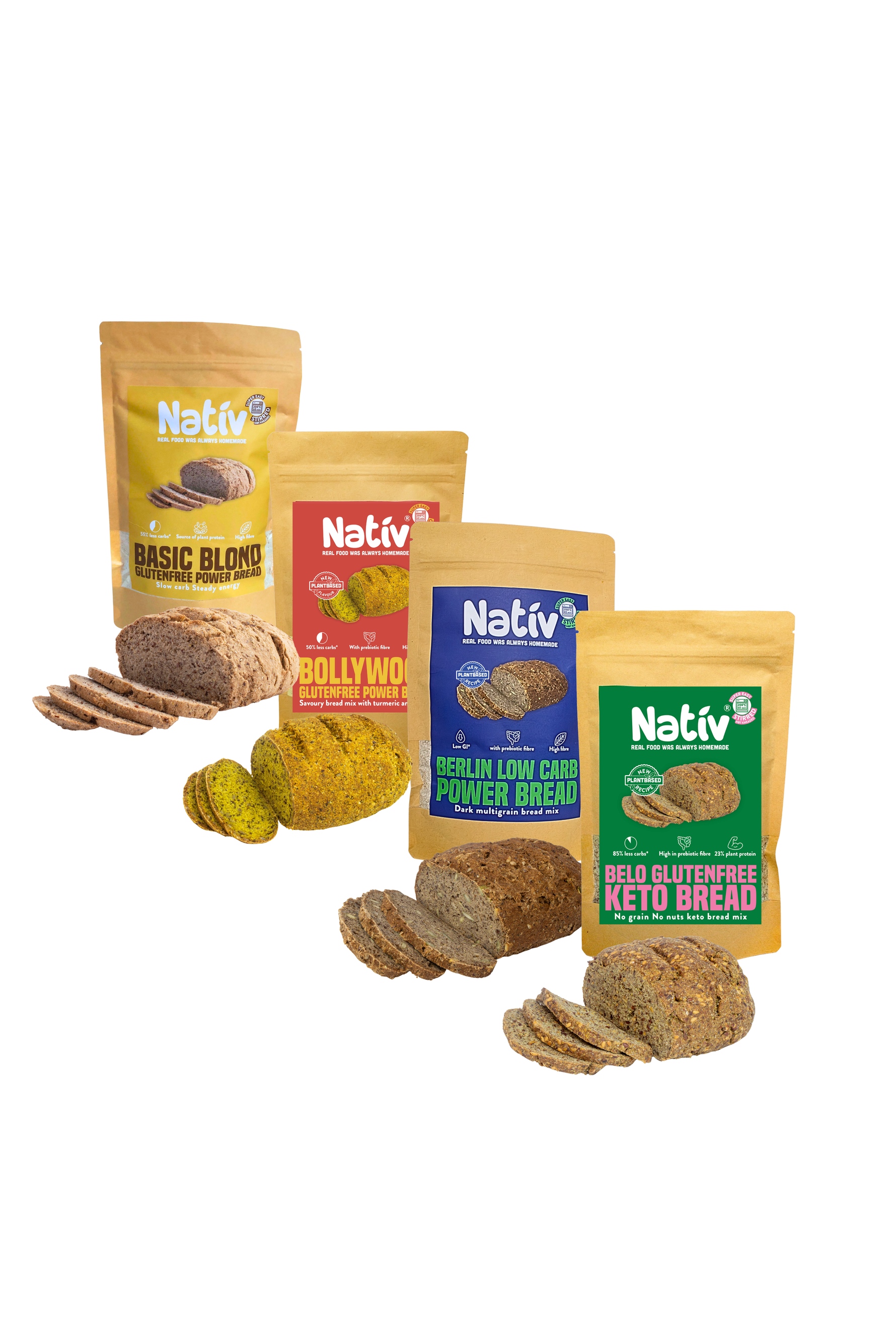 Onze collectie vezelrijke glutenvrije broodmixen , geschikt voor verschillende voedingsvoorkeuren, van (s)low carb tot keto. Allemaal zonder lactose, noten en plantbased.